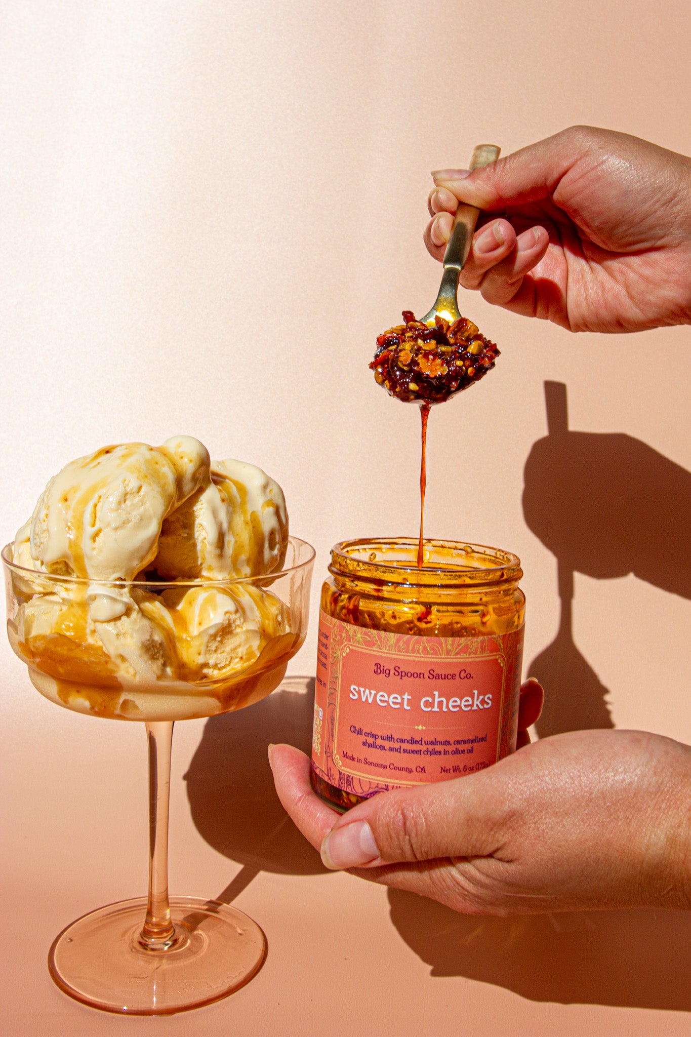 We really swung for the fences with this one. Sweet Cheeks is our first chili crisp developed specifically for ice cream sundaes!